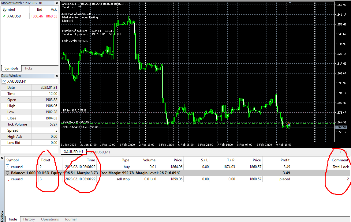 Dr Vadim, also found a bug problem issue above photo, you see above on mt5 gold xauusd, i enter buy at point 1, and when price drop to point 2, i close the lock and the robot automatically open 2 locks at point 3 and 4, please fix this bug on mt5 gold xauusd also, once fix problem resolve please let me know?
