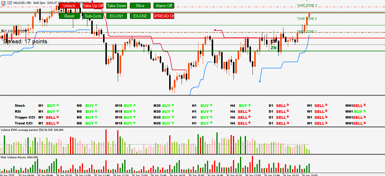 Der X-21 TrendSync Elite ist ein fortschrittlicher Indikator, der für Händler entwickelt wurde, die präzise Handelsentscheidungen auf der Grundlage mehrerer technischer Indikatoren treffen wollen. Er arbeitet in einem separaten Fenster und integriert Stochastik-, RSI- und CCI-Indikatoren (in zwei Varianten: Trigger CCI für Einstiege und Trend CCI für Trends), um klare visuelle Signale für Kauf, Verkauf oder Abwarten zu liefern. Mit der Unterstützung von neun Zeitrahmen (M1, M5, M15, M30, H1