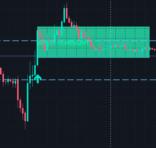 Swing-Trading-Logik und professionelle MQL5-Entwicklung auf den ersten Blick. Das Kerzenchart in der Mitte stellt die reale Marktstruktur dar und zeigt sowohl bärische (rot) als auch bullische (grün) Bewegungen. Dies unterstreicht die Fähigkeit des Indikators, mittelfristige Kursschwankungen und nicht nur kurze Scalps zu erfassen. Der Übergang von roten Kerzen auf der linken Seite zu grünen Kerzen auf der rechten Seite vermittelt visuell die Trendumkehr und -fortsetzung , die den Kern des