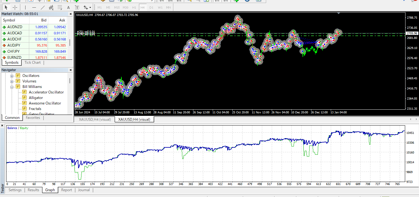 XAUUSD Trend-Detektor mit dynamischer Unterstützung/Widerstand Dieser EA basiert auf einem Indikator, der speziell für XAUUSD (Gold) entwickelt wurde, um Trends zu erkennen und dynamische Unterstützungs-/Widerstandsniveaus (SR) zu berechnen. Er kombiniert Trenderkennung und Unterstützungs-/Widerstandsanalyse , um Handelssignale zu generieren. Wichtigste Komponenten 1. Exponentielle gleitende Durchschnitte (EMA) Verwendet drei EMAs: 8, 21 und 55 , um Trends zu bestimmen. Goldenes Kreuz: Wenn der