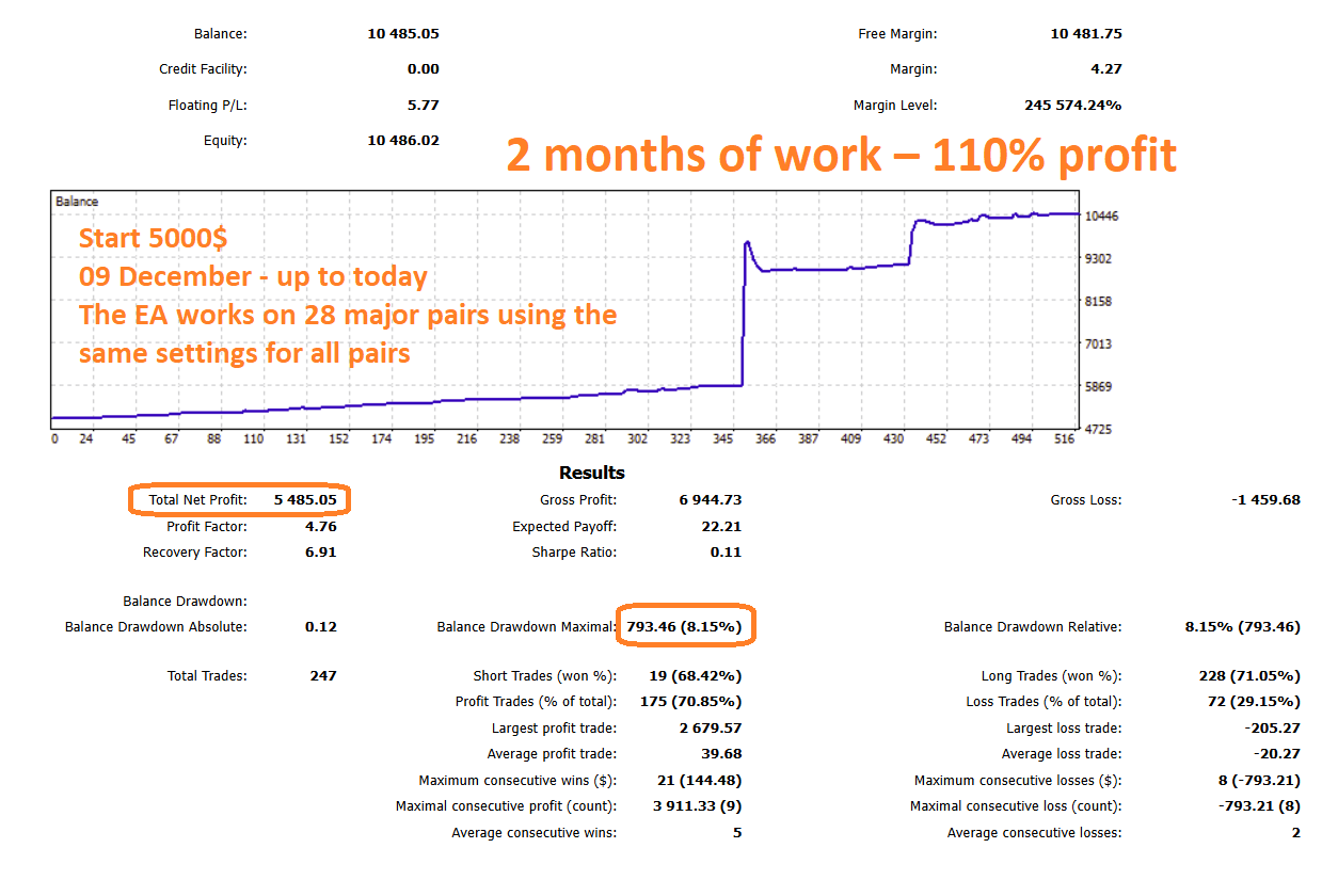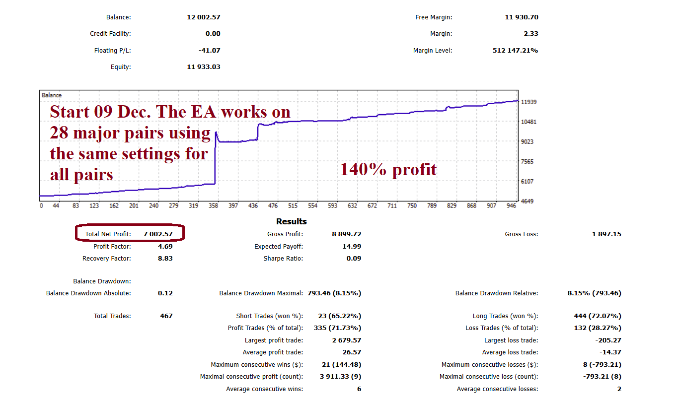 The start was on September 12, 2025, on 28 major currency pairs. This is the result up to today.