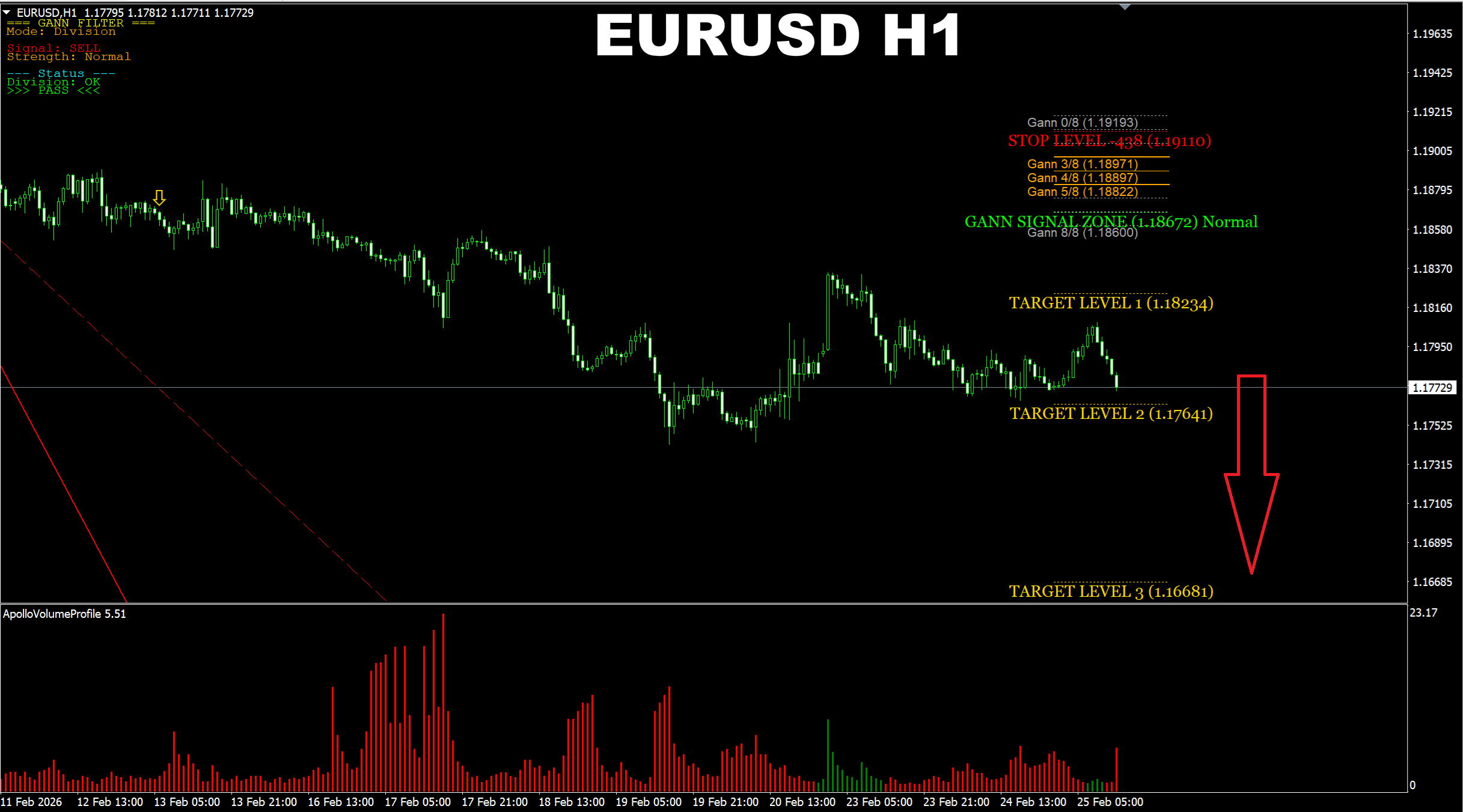 Currency Strength Wizard. EURUSD H1. Update on recent SELL signal. As it was predicted earlier, the price is moving down. We can use the Support resistance down below as potential area where the price is heading to.