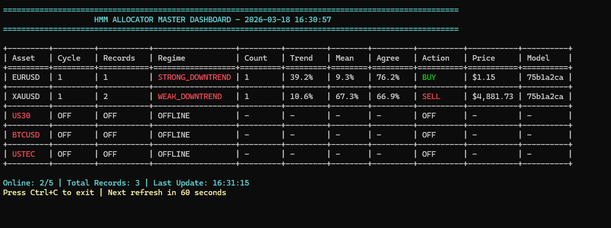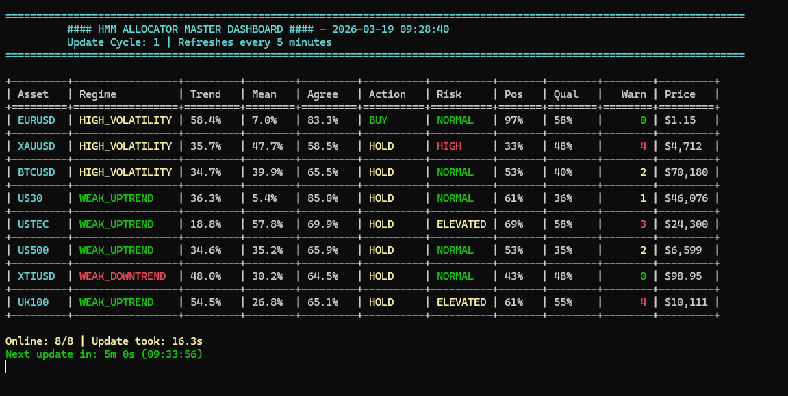 I've built a production-ready HMM market regime detection system that runs live on MT5.