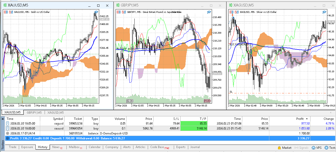 ⭐ Gold Sniper Cloud EA (Wolken-Trend-Strategie) Gold Sniper Cloud EA ist ein automatischer Handelsroboter, der auf dem Cloud-Indikator basiert. Er handelt nur dann, wenn starke Trendbedingungen bestätigt werden, was Händlern hilft, falsche Signale und Over-Trading zu vermeiden. Der EA ist speziell für Gold (XAUUSD) optimiert, kann aber auch für andere Trendsymbole verwendet werden. ✅ Hauptvorteile ✔ Vollautomatischer Handel ✔ Verwendet Multi-Confirmation-Cloud-Strategie ✔ Intelligentes Risiko-