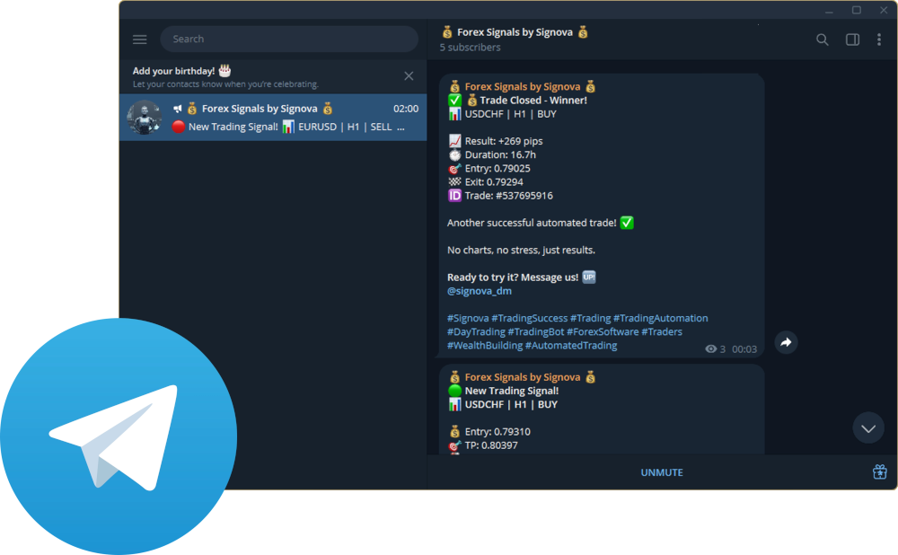 We're excited to announce our free Telegram channel where every single Signova trade is published live!