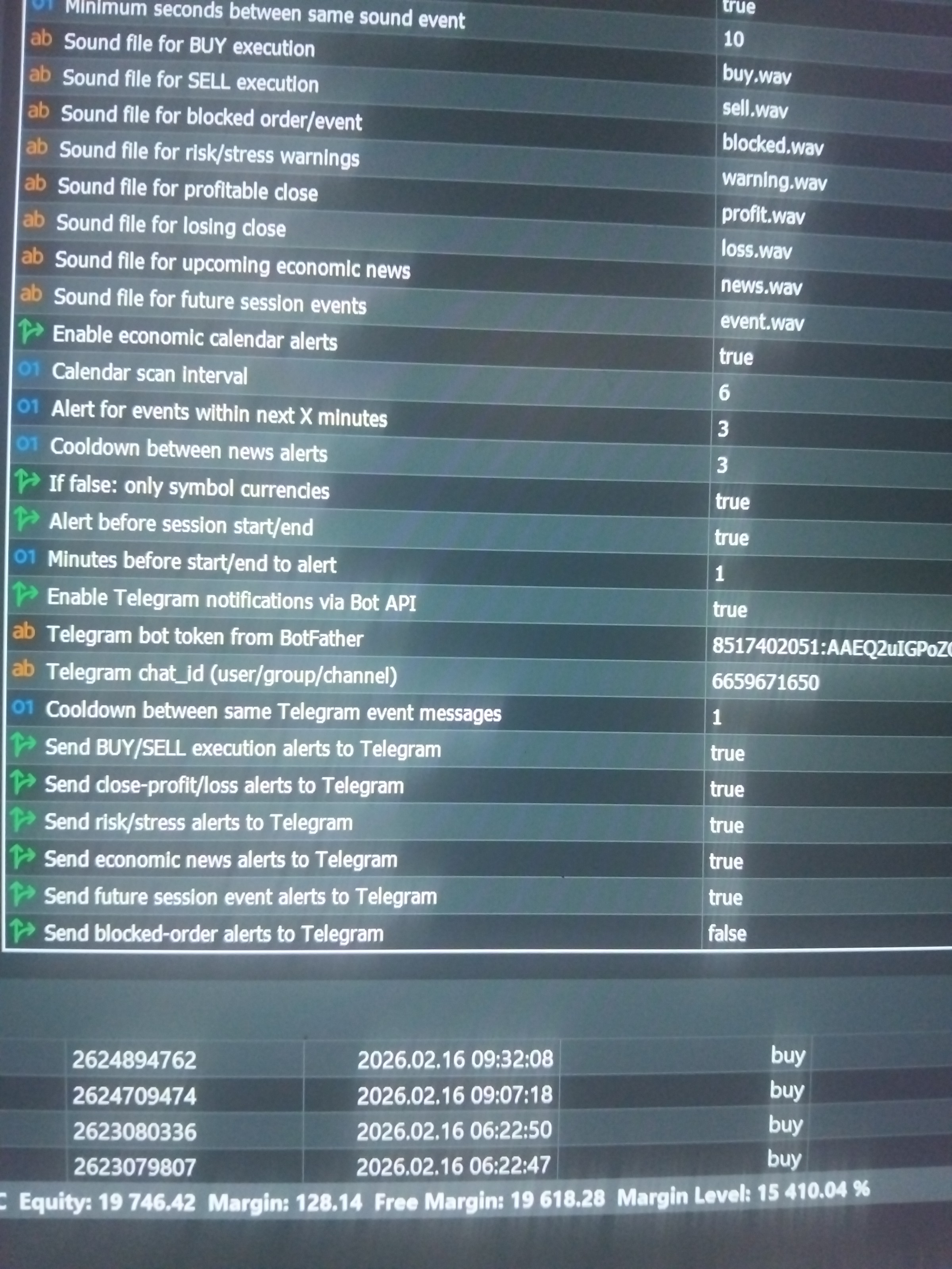Sound alerts (BUY/SELL, risk, blocked, profit, loss)