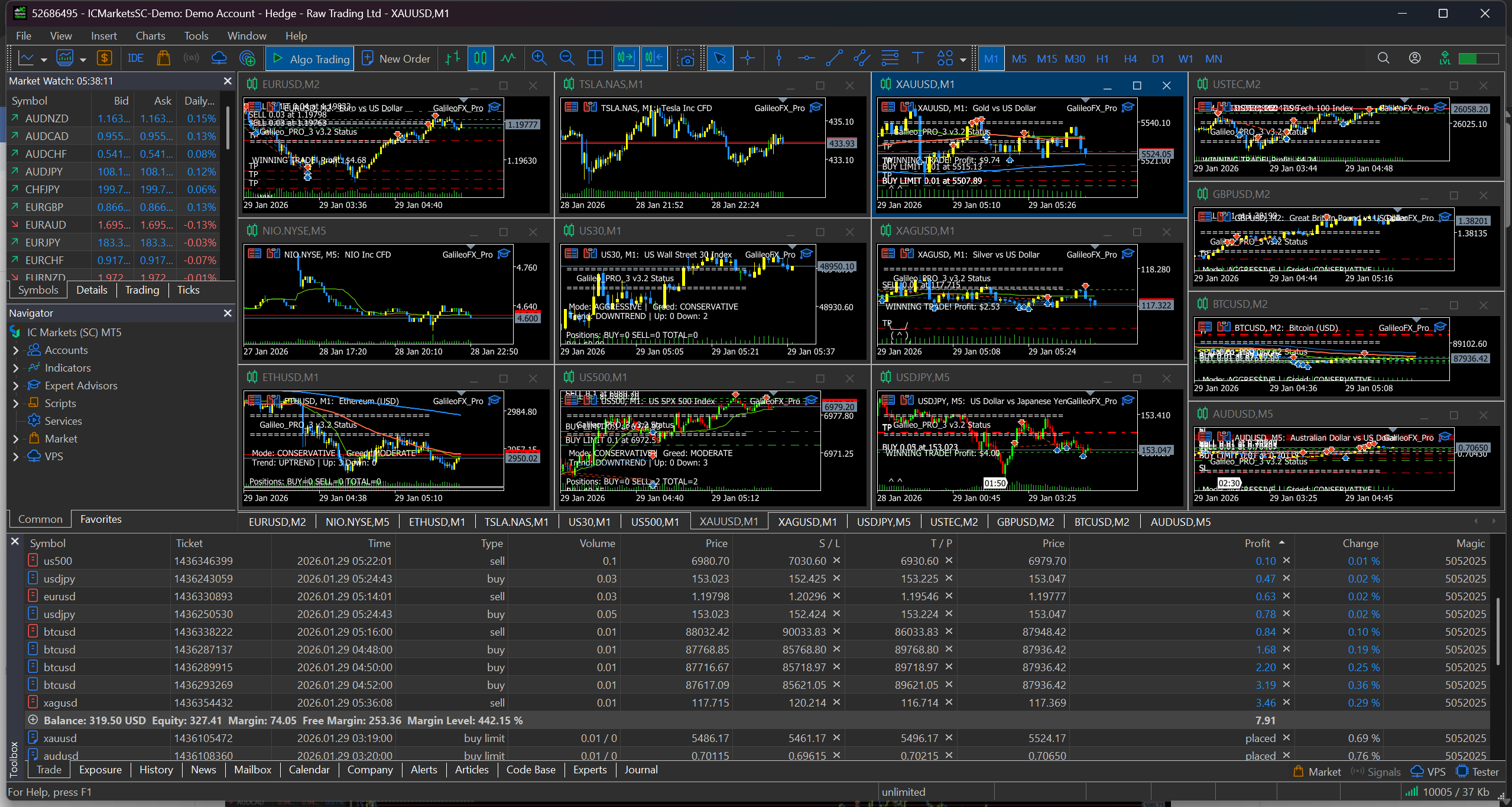 Galileo FX Pro_3 is an MT5 Expert Advisor designed for automated trading with layered risk controls, time filters, and adaptive behavior. Below is a clear, practical guide to using it and understanding its strongest functions.
