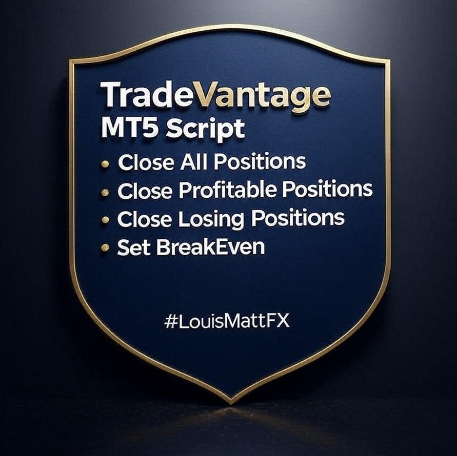 TradeVantage MT5 Script ist ein benutzerfreundliches, effizientes Tool, das für MetaTrader 5-Händler entwickelt wurde, um offene Positionen mit Leichtigkeit zu verwalten. Dieses Skript bietet vier leistungsstarke Handelsverwaltungsoptionen über ein einfaches Dialogfeld, das eine schnelle Ausführung auf dem Symbol des aktuellen Charts ermöglicht. Ganz gleich, ob Sie alle Positionen schließen, Gewinne sichern, Verluste minimieren oder Positionen auf Break-even setzen möchten, TradeVantage
