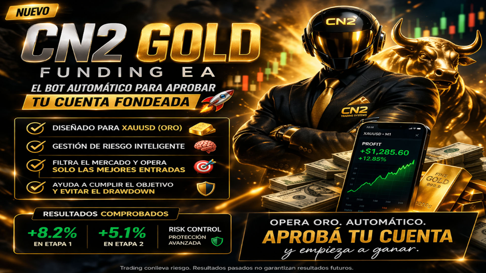 CN2 Gold Funding EA ist ein professionelles automatisches Handelssystem für XAUUSD im M15-Zeitrahmen , optimiert, um Prop Firm Challenges mit niedrigem Drawdown und kontrolliertem Risiko zu bestehen. Handelszeit: 23:00 bis 02:00 (New York Session) . Funktionen: Automatische Risikoberechnung Automatisches Break Even Trailing Stop Daily und Total Drawdown Schutz Challenge Modus Informationspanel Optimierte Standardeinstellungen Ziel: Eine Funding Challenge in etwa 3 Monaten bestehen