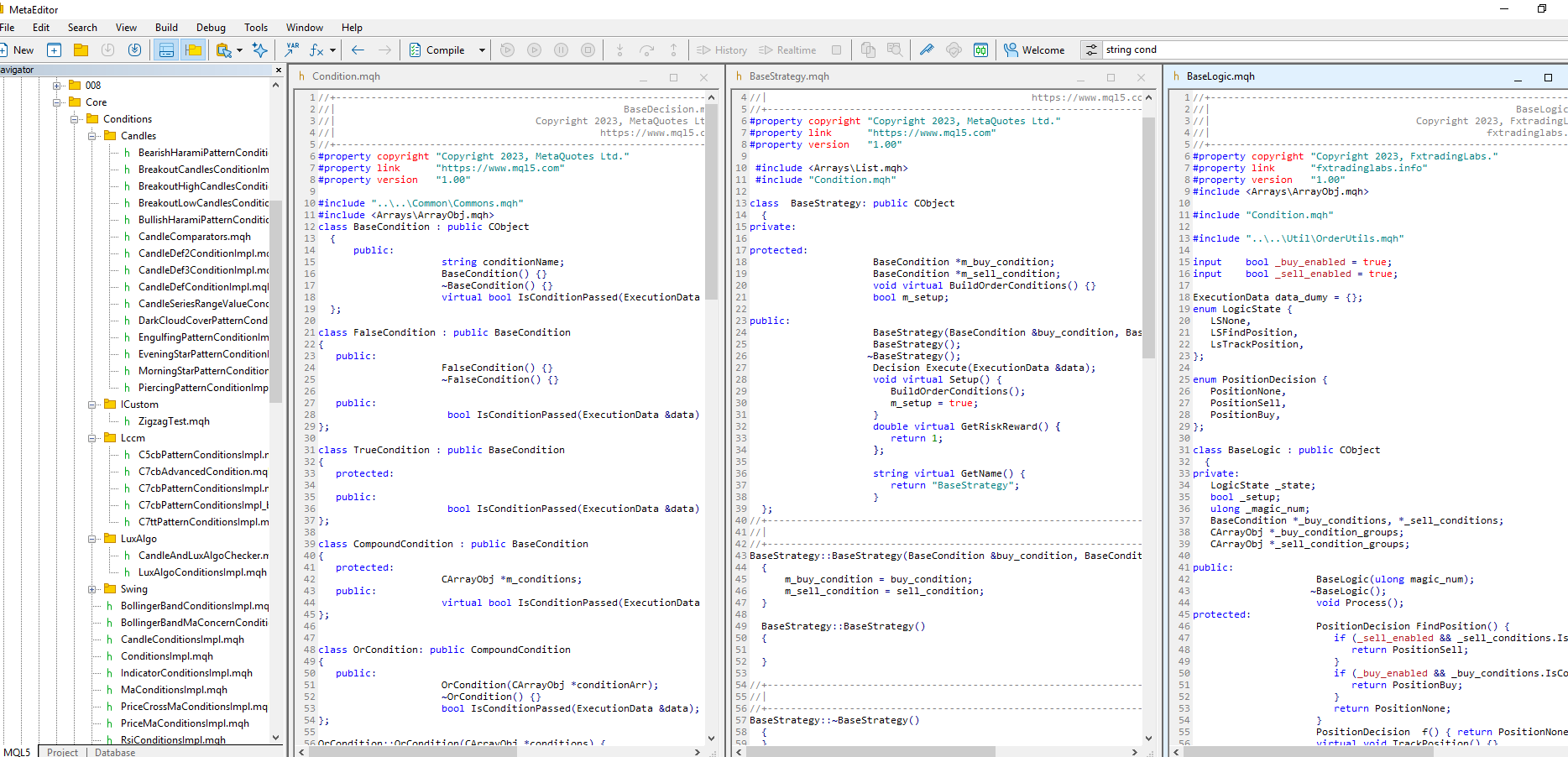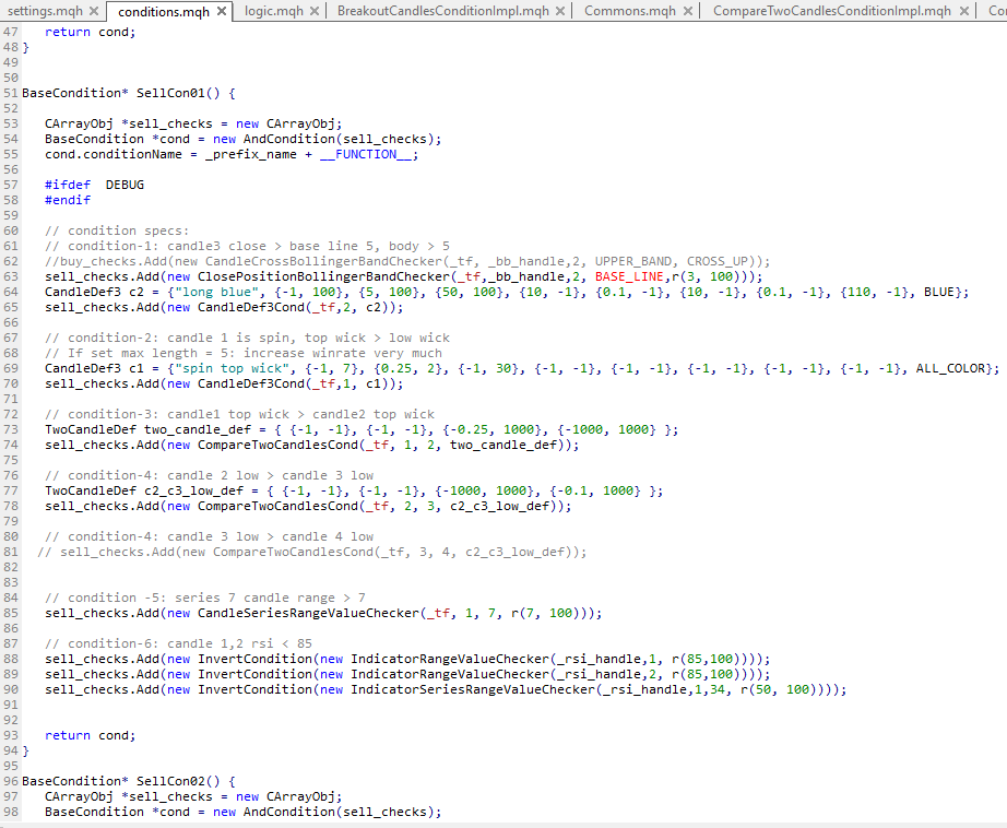How do you setup conditions to buy/sell in the MQL5, this is the way/code pattern/simple framework I have done by my self.