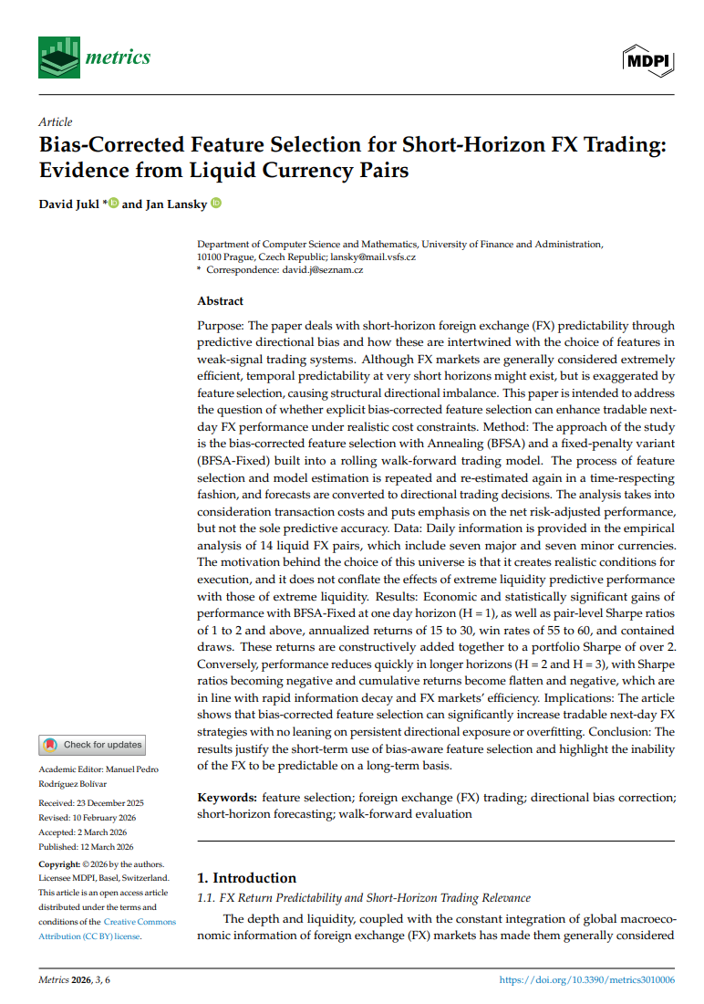 📄 "Bias-Corrected Feature Selection for Short-Horizon FX Trading: Evidence from Liquid Currency Pairs"