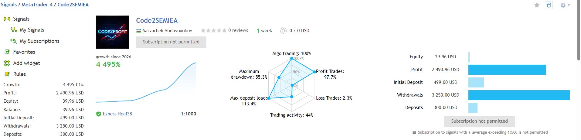 - Algo-Trader & MQL5 EA Developer Founder of Code2Profit in Freelancer