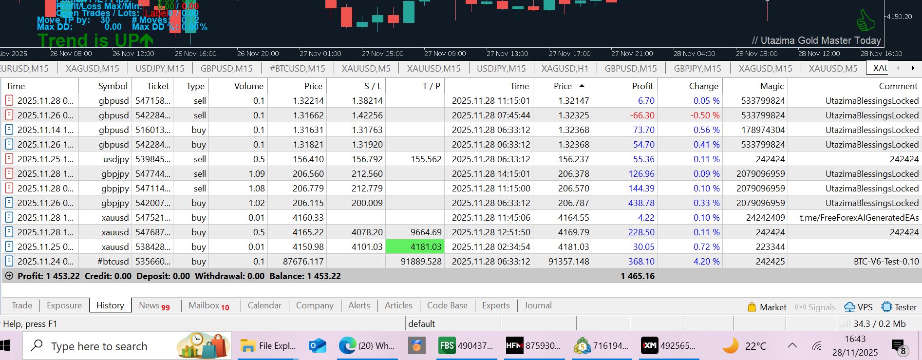 New ea Coming.... This EA is suitable for live trading and can be configured for prop firm evaluation and funded accounts, depending on risk settings and firm rules. XAUUSD (Gold) Trial Version – For testing execution and strategy behavior