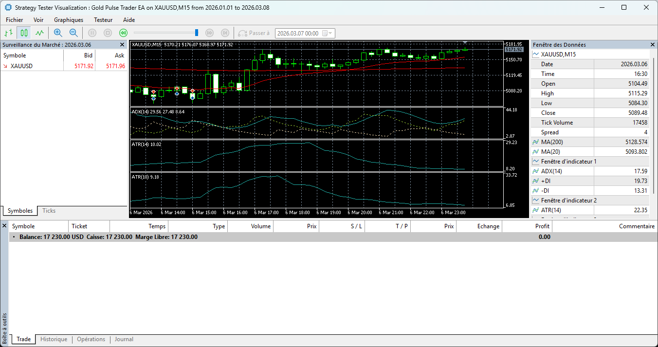 Gold Pulse Trader EA est un Expert Advisor algorithmique conçu pour capturer les mouvements directionnels du marché de l’or Gold (XAUUSD).