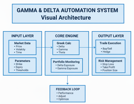 Our primary objective is to create an automated trading system that dynamically manages option positions through continuous delta hedging and strategic gamma scalping. The core concept revolves around maintaining a delta-neutral portfolio while capitalizing on gamma-driven price movements. Since options' delta values change as the underlying asset price moves (a phenomenon measured by gamma), we need an automated system that can continuously monitor these Greek exposures and execute trades to rebalance the portfolio. This approach aims to profit from the volatility of the underlying asset rather than its directional movement, creating a market-neutral strategy that generates returns through frequent, small adjustments rather than betting on price direction.