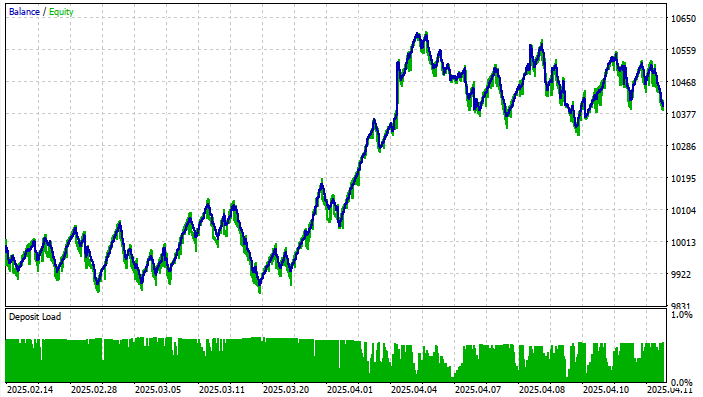The back-testing was evaluated on the symbol 'EU50cash' on the 1H timeframe across roughly a 2-month testing window (14 February 2025 to 11 April 2025), with the following settings: