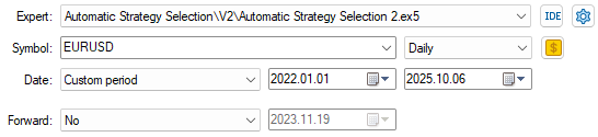 Figure 12: Selecting the backtest window to evaluate our strategy over