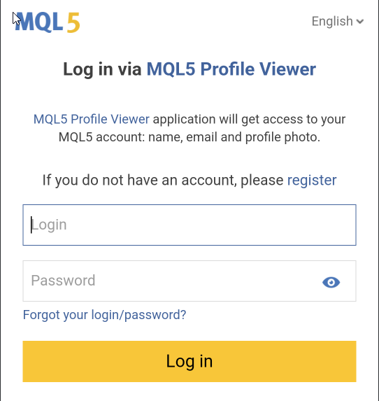 - Redirect to the MQL5 authorization page.