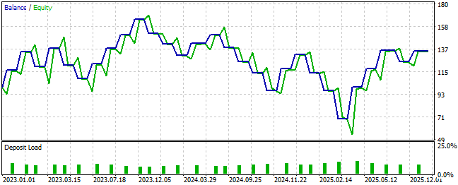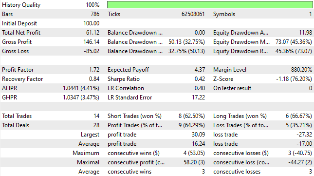 However, as the reader can see from the resulting equity curve, although the strategy was profitable, it failed to meet our expectations. The new trading strategy reached balance levels lower than any previously observed. In the initial setup, the strategy reached a low of $84, whereas in the current setup it reached a new low of $71. This is undesirable.