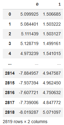 Next, instantiate the encoder, and apply the fit_transform method to reduce our original eight-dimensional dataset to a two-dimensional representation.