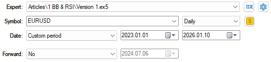 To avoid unnecessary repetition of the same information, we will now highlight important aspects of the backtest that we are going to conduct that will remain fixed across all five iterations of the application. We shall consider the first setting that we have to outline, which we will keep fixed, to be the time span of the backtest. Our backtest will run over three years, from January 2023 up until January 2026. All our backtests will be implemented on the EURUSD pair on the daily time frame.