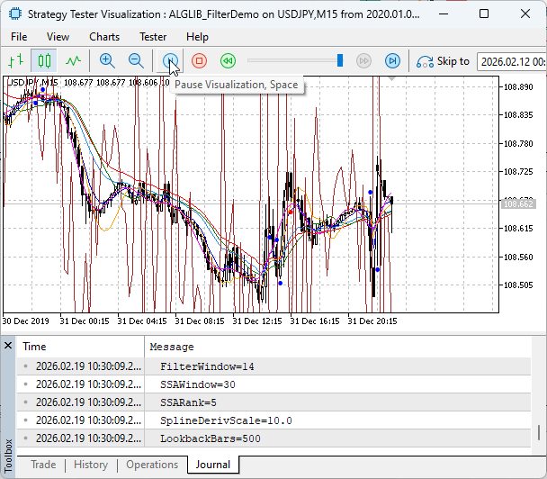 //+------------------------------------------------------------------+ //| ALGLIB_FilterDemo.mq5 | //| Copyright 2026, Clemence Benjamin | //| https://www.mql5.com | //+------------------------------------------------------------------+ #property copyright "Copyright 2026" #property link "https://www.mql5.com" #property version "1.00" #property indicator_chart_window #property indicator_buffers 10 #property indicator_plots 10 //--- include ALGLIB #include <Math/Alglib/alglib.mqh>