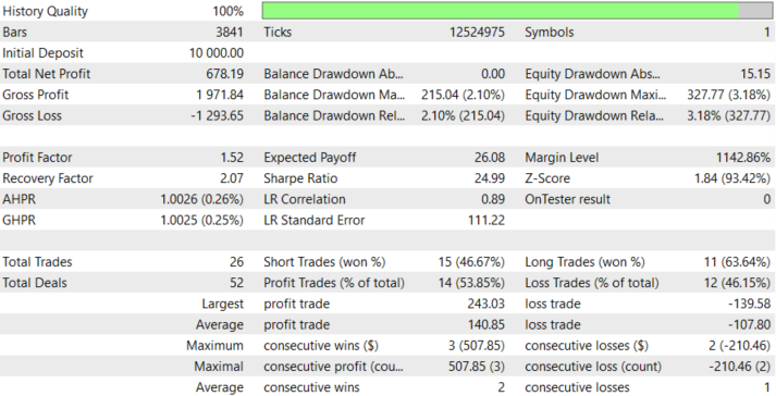 The primary goal of the system was to convert subjective price-action structure into a deterministic, rule-based traversal of swings, where trades are executed only after a valid structural path reaches sufficient depth and confirms directional bias. The back-testing was conducted on the XAUUSD pair, on the M15 timeframe across a 2-month testing window (01 December 2025 to 30 January 2026), with the default settings: