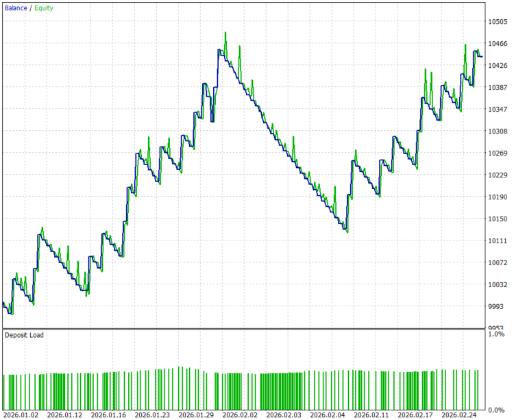 The backtest was conducted over roughly a 2-month testing window from 01 January 2026 to 28 February 2026, with the following settings: