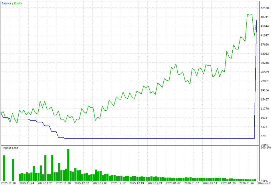 The backtest was conducted across roughly a 2-month testing window from 20 November 2025 to 30 January 2026, with the following settings: