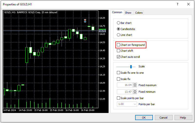 To place the panel above the graph, right-click on the graph, go to "Properties" > "Common", and uncheck the "Chart on foreground" option.
