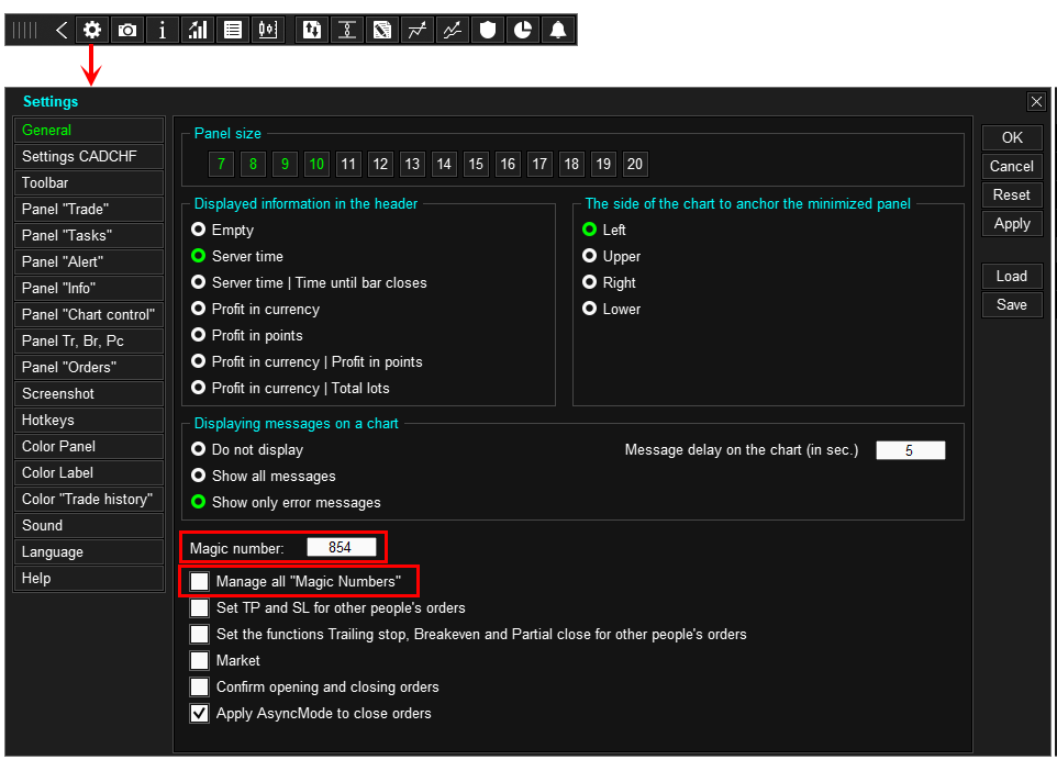 - Each TradePanel must have a unique Magic Number. No TradePanel with the same Magic Number should be installed in the terminal.