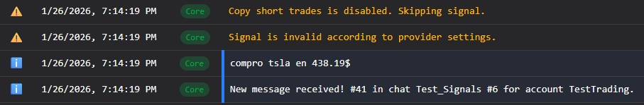 We strongly recommend using a demo account and a test channel to verify if your signal formats are correctly recognized. If you're confident that your configuration is correct but something is still not detected, please contact support through the app and provide an example of the signal message that failed.