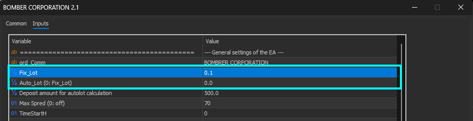 On this page, you will find all the necessary information on how to configure the Bomber Corporation EA, as well as other materials related to using this expert advisor.