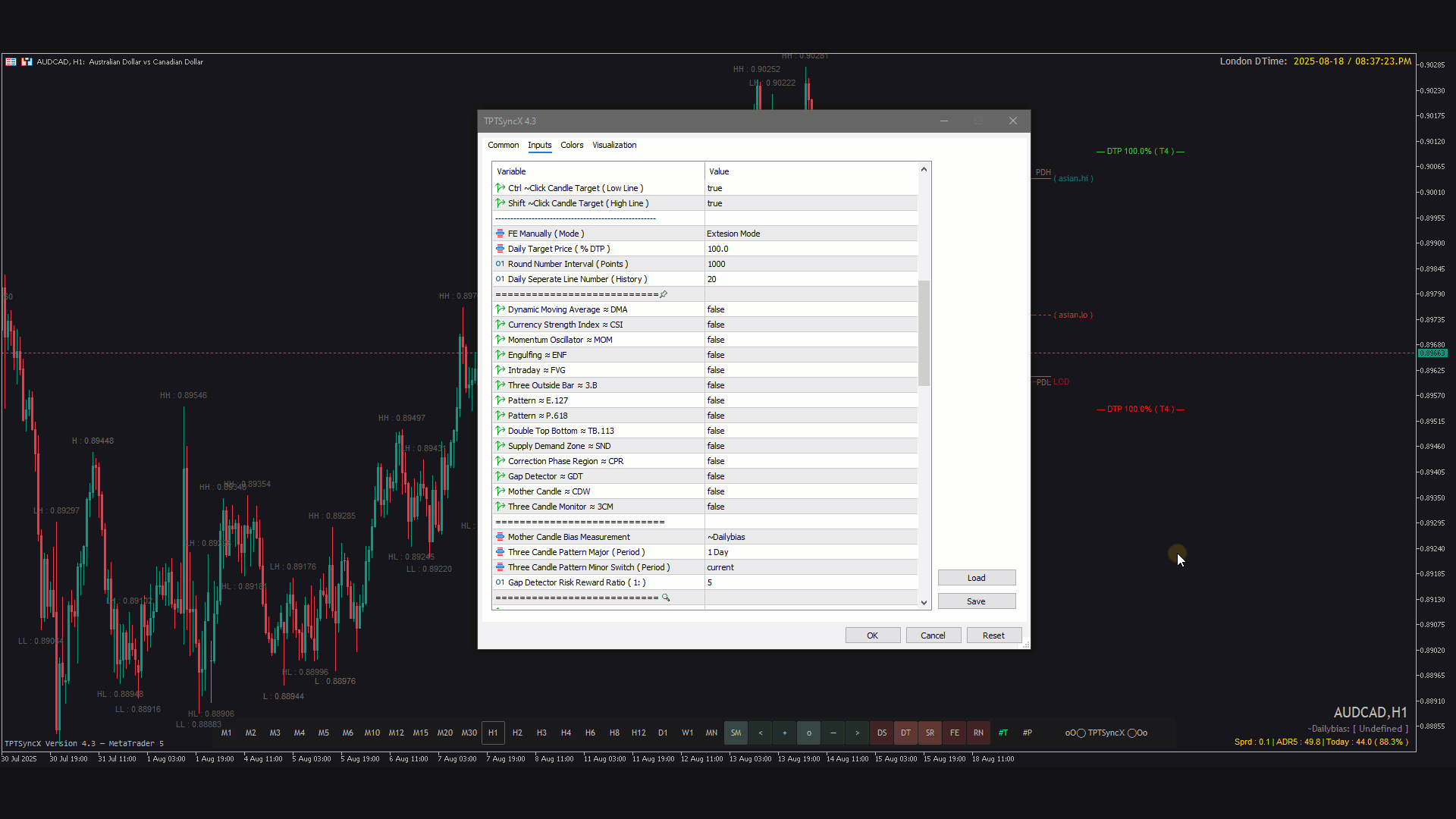 A collection of practical enhancements designed to simplify and streamline the trading process. Core features include daily reference lines for clarity, manual Fibonacci extension tools for projection, round number markers to spot psychological price levels, daily target price indicators for measured objectives, and time session guides to track market openings and overlaps. These supporting functions provide traders with a cleaner workflow, reducing chart clutter while enhancing decision-making. And with many more utilities integrated, they collectively serve as a comprehensive toolkit to support consistency, precision, and efficiency in everyday trading.