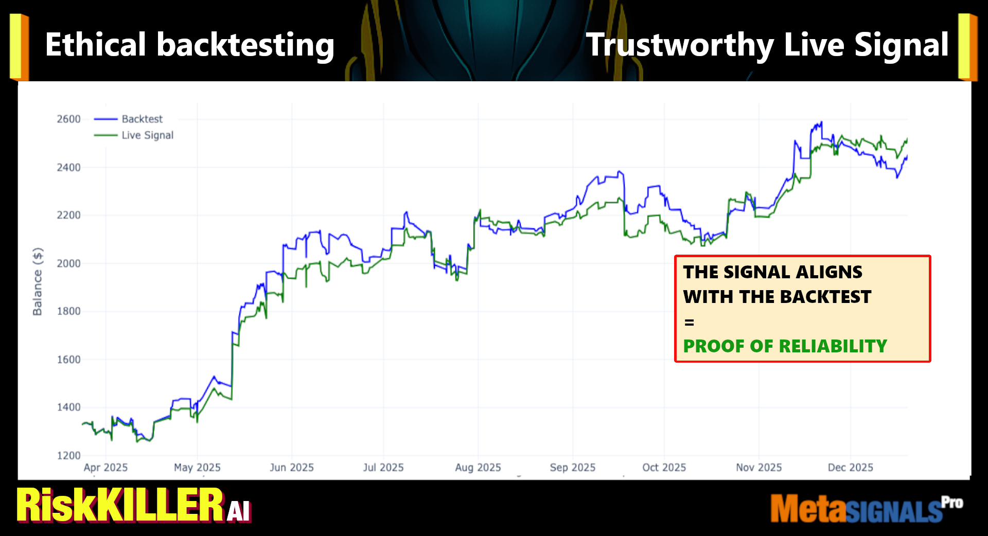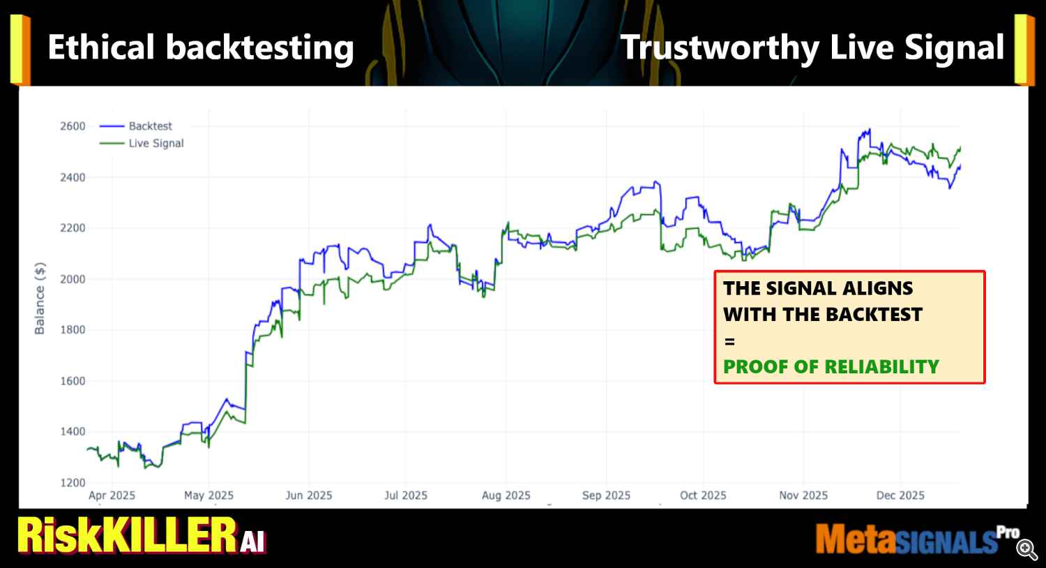 5. Monitor the ALIGNMENT OF THE BACKTEST AND THE LIVE SIGNAL (if your are our follower and clients)