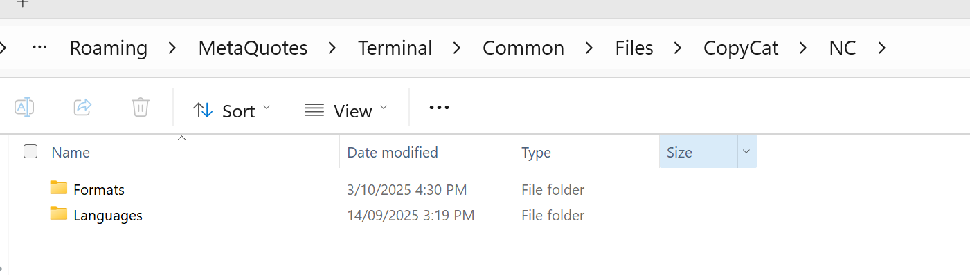 - FormatFile – Select message format template (odd = MT5, even = MT4). Files live in Common\Files\CopyCat\NC\Formats .