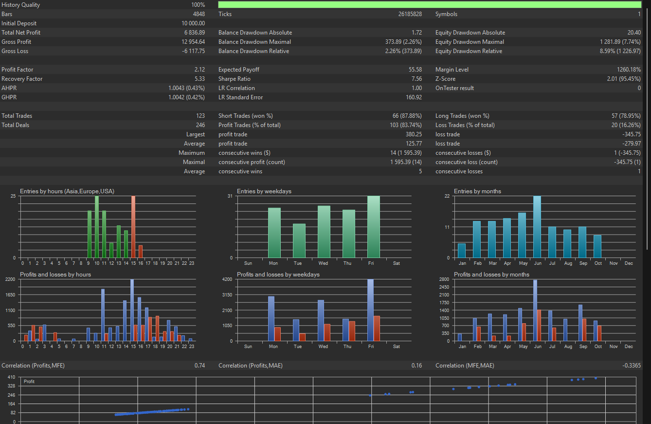 On the following photos you are able to see the Graph and the Statistical results from the Strategy Tester.