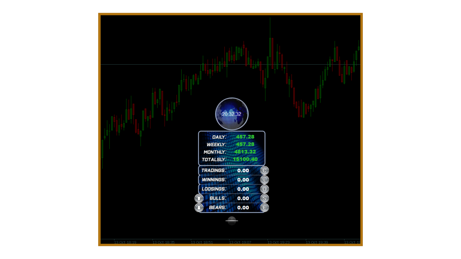 Once you attach the EA to your chart, you’ll see a clean, futuristic dashboard. It displays your daily, weekly, monthly, and total profit in real time. You can also monitor your open trades, winning trades, and losing trades instantly.