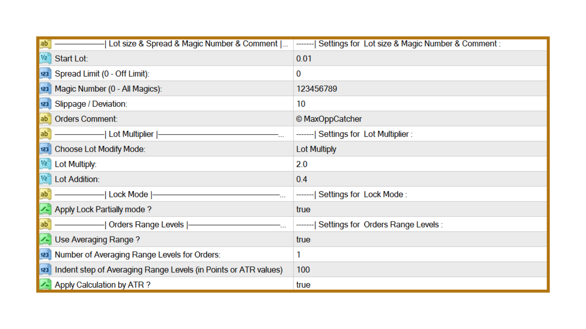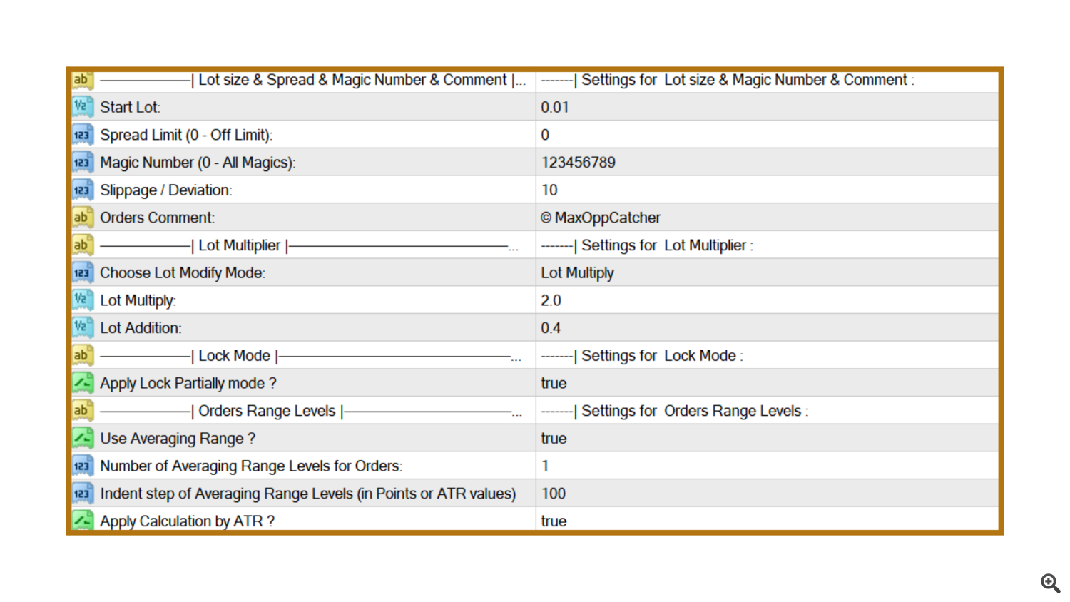 Lot Multiplier – Used for lot scaling (for example, 2.0 means the next trade doubles in size).