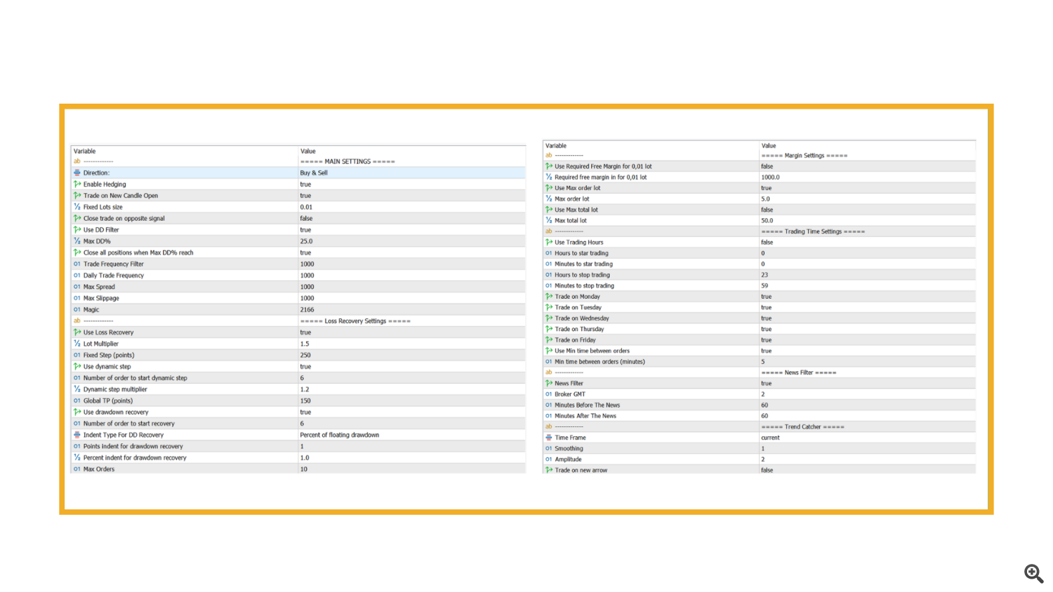 | Symbol | EURUSD / XAUUSD / major pairs | Start with majors |