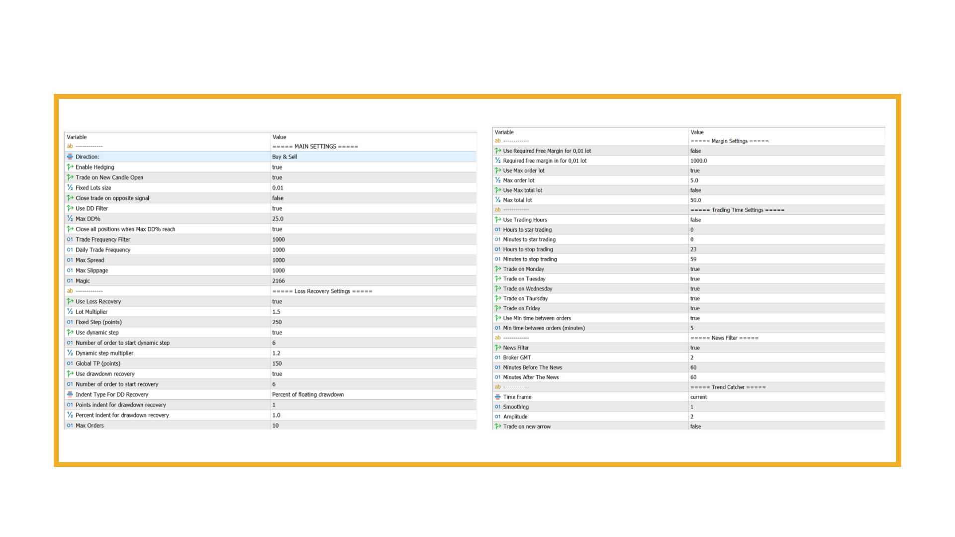 Max Orders and Min Time Between Orders prevent over-exposure.