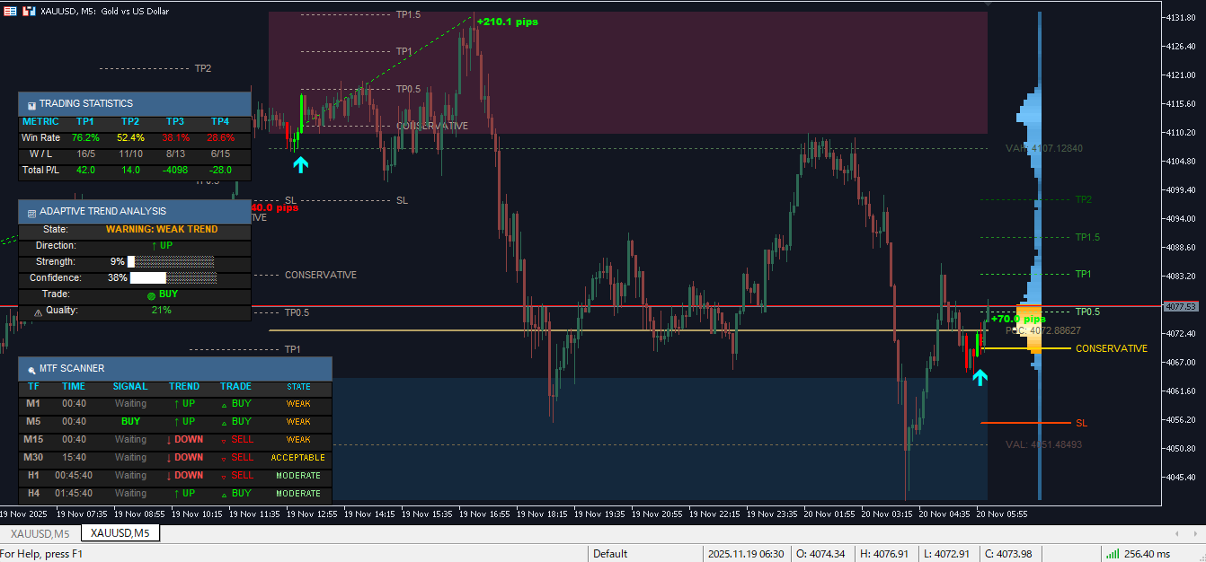 For the serious trader: Approach Gold trading with a structured, data-driven methodology that combines multiple market analysis factors to find an edge. This is the tool built to change the way you look at Gold trading.