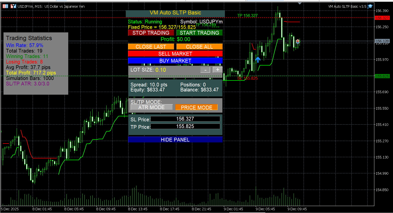 Supports ATR-based or fixed-price SL/TP