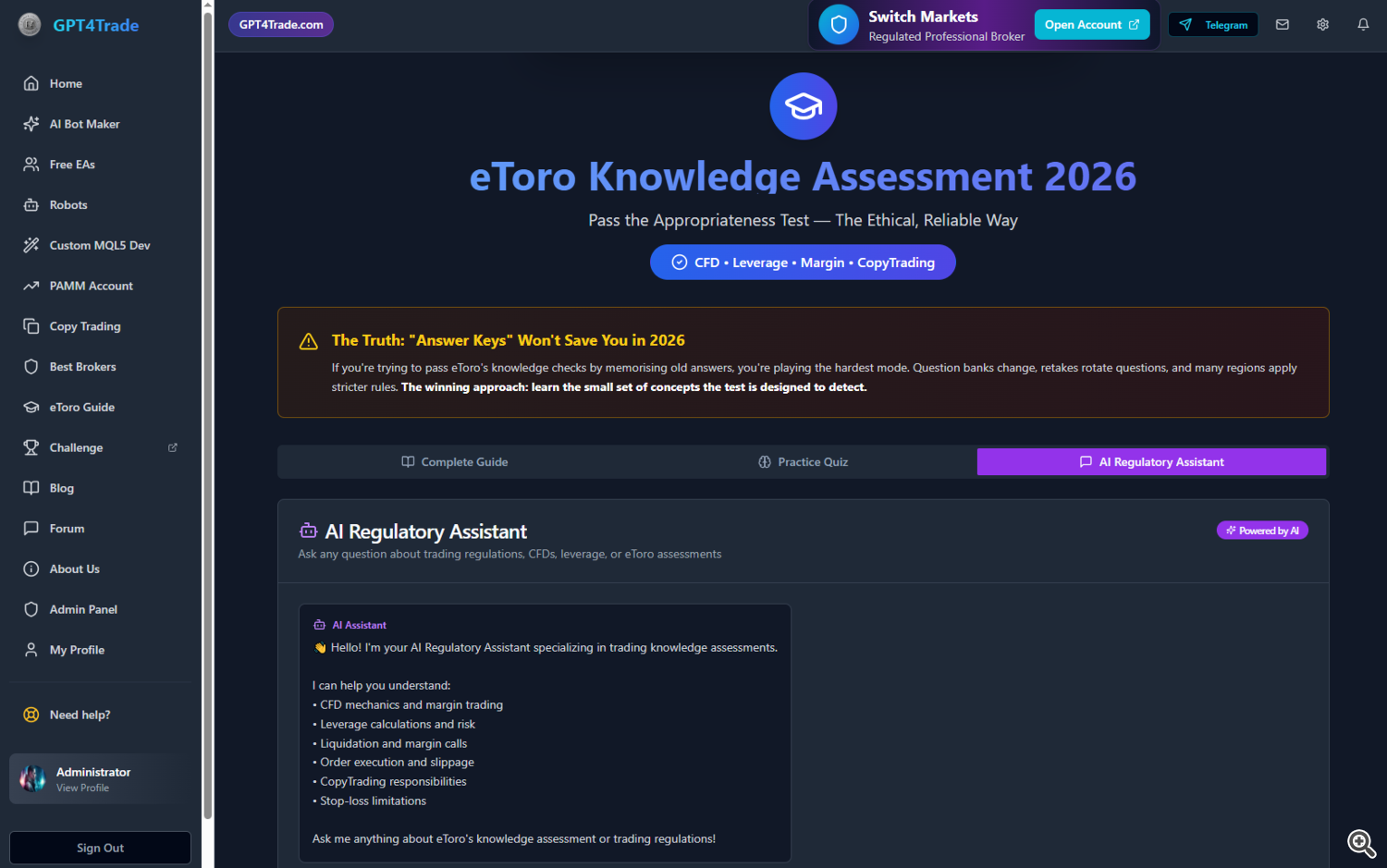 We built a dedicated AI Assistant for regulated brokers to help traders prepare for: