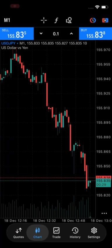 Updated trading dialog on the chart tab in Metatrader 5 5431 for iOS.