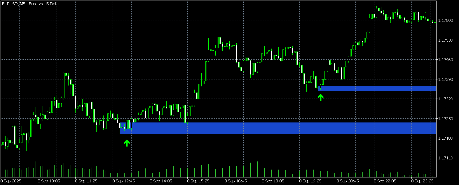 Break Out Zone transforms abstract concepts into actionable signals on your current timeframe. Whether you trade five-minute charts or daily timeframes, the indicator adapts to your chosen perspective, identifying order blocks relevant to that specific context. You're not overwhelmed with information from multiple timeframes but rather focused on the institutional levels that matter right now.