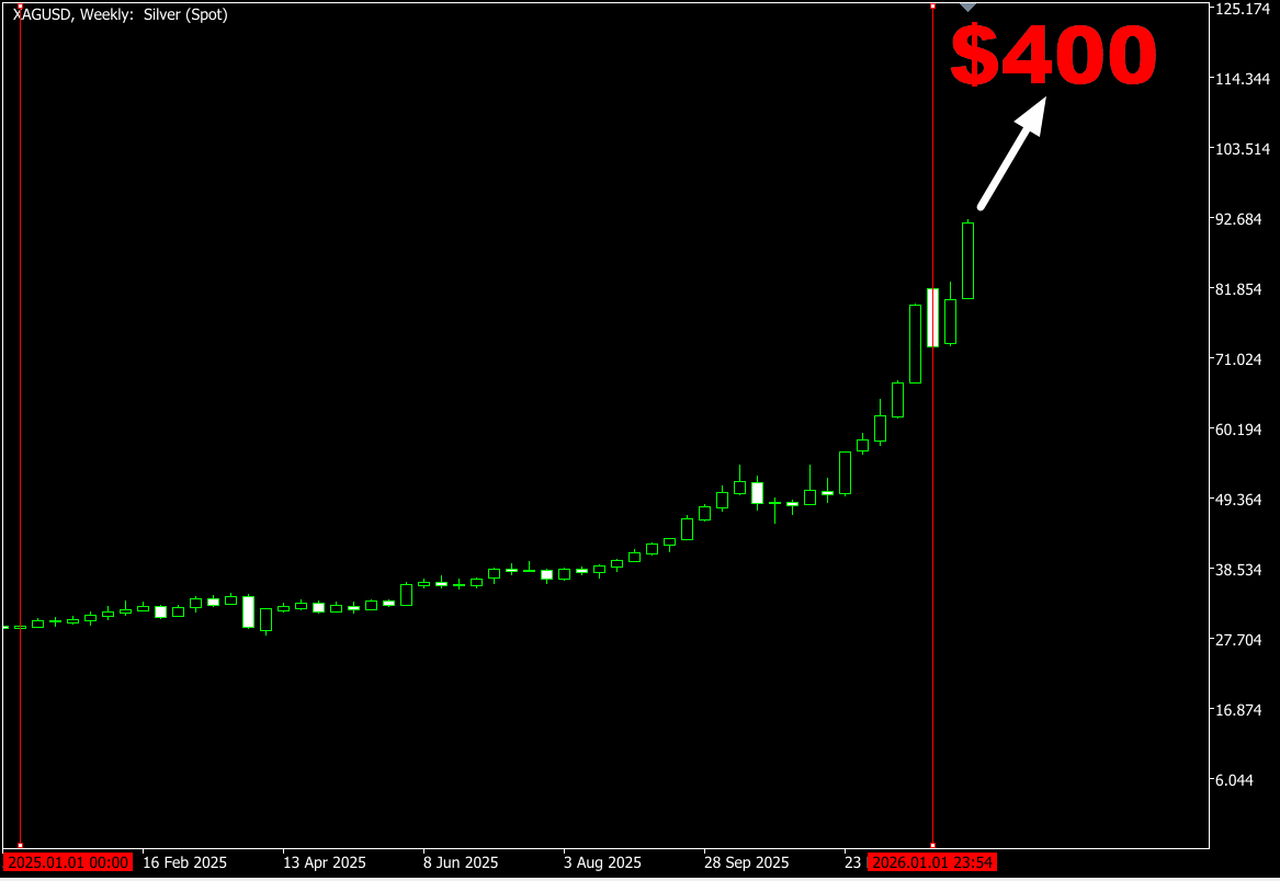Silver could surge past $400 per ounce.