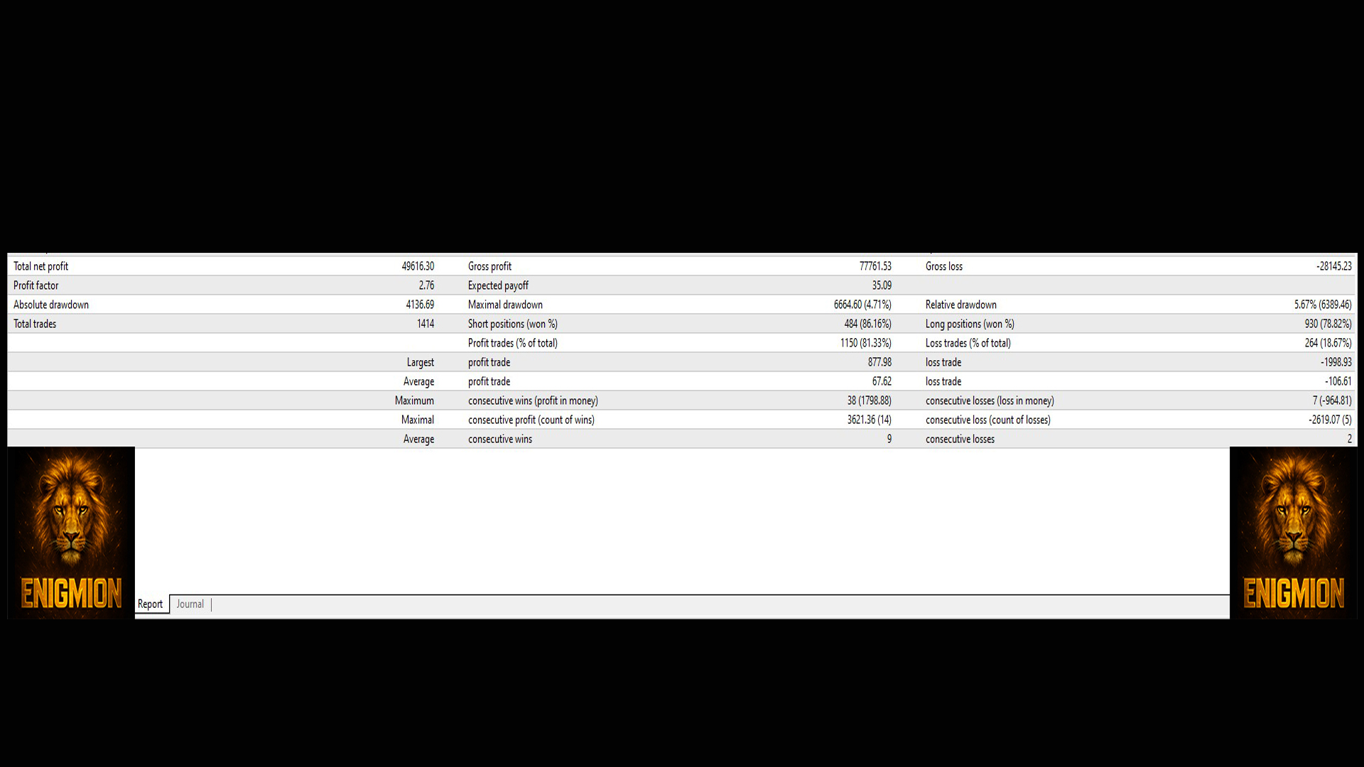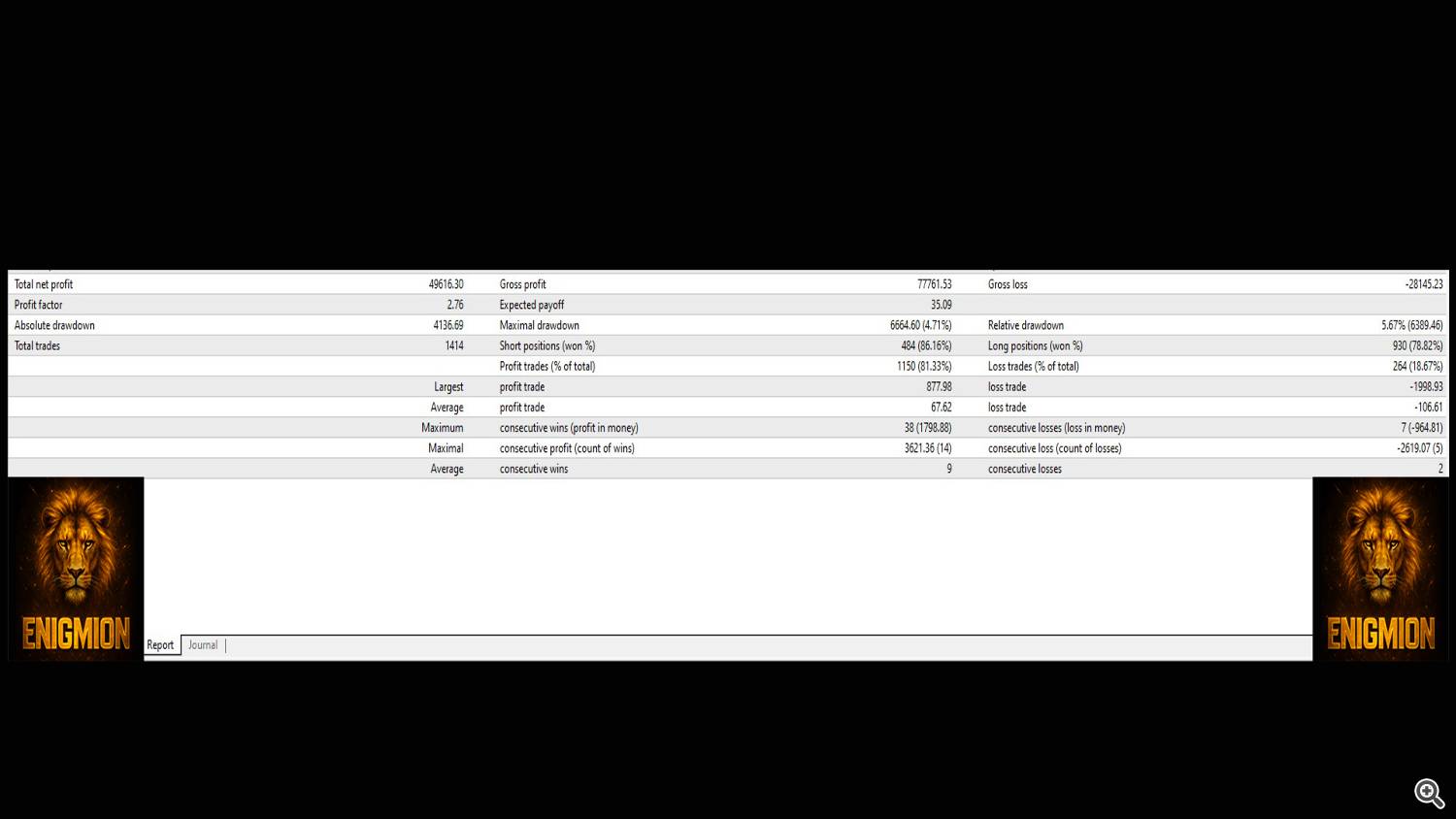 For this reason, Enigmion is specifically optimized for this symbol and timeframe.