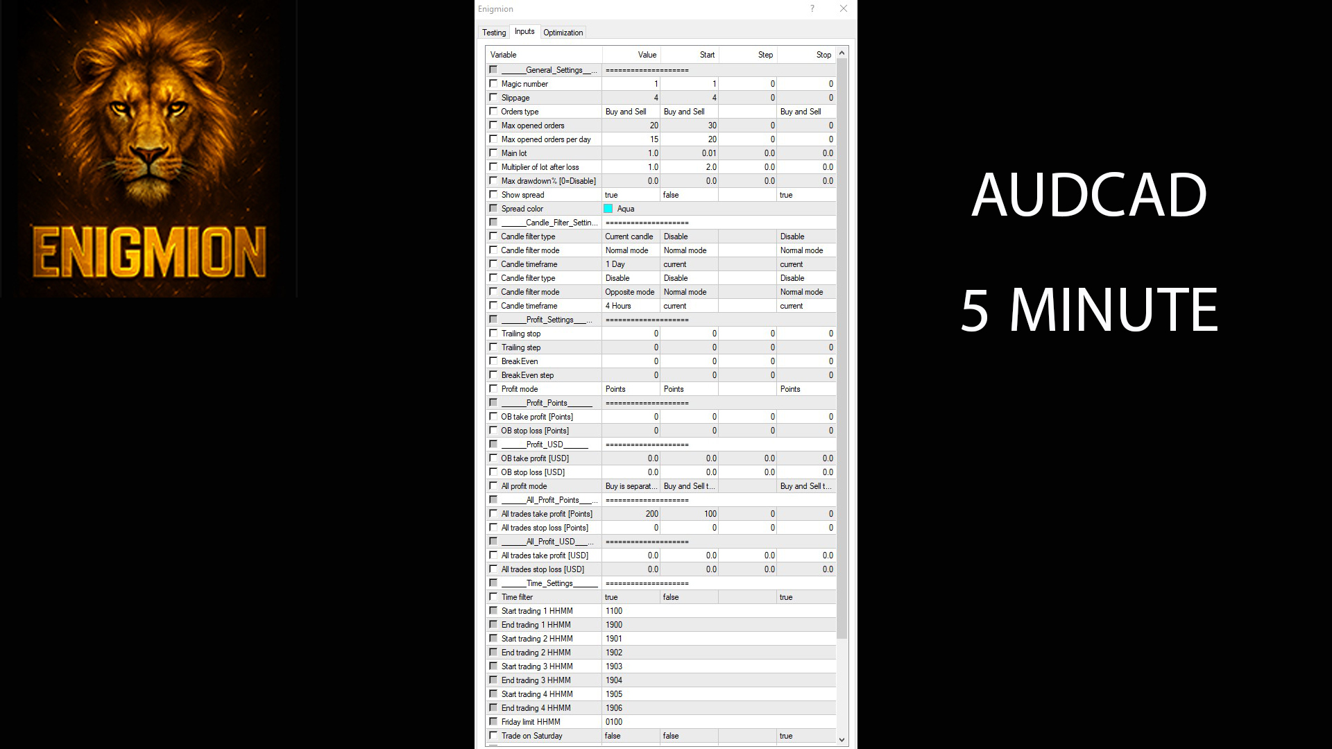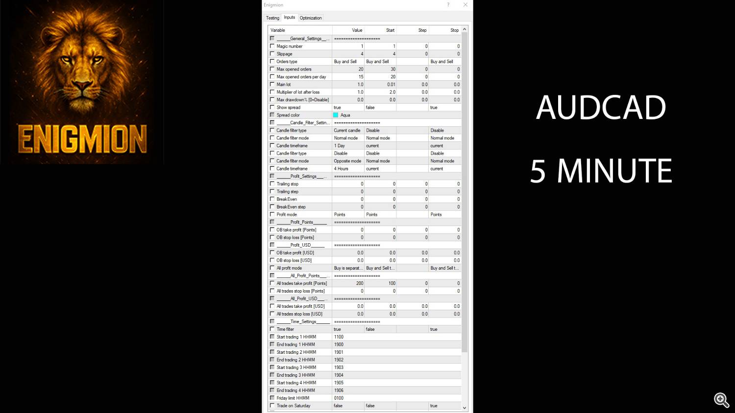 Enigmion EA – Precision Trading for AUDCAD M5