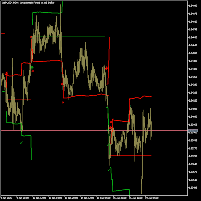 The Fibonacci Progression Indicator analyzes completed price swings and calculates Fibonacci progression levels based on these movements. The projected levels are extended forward on the chart, providing a visual reference for potential price objectives and reaction areas.